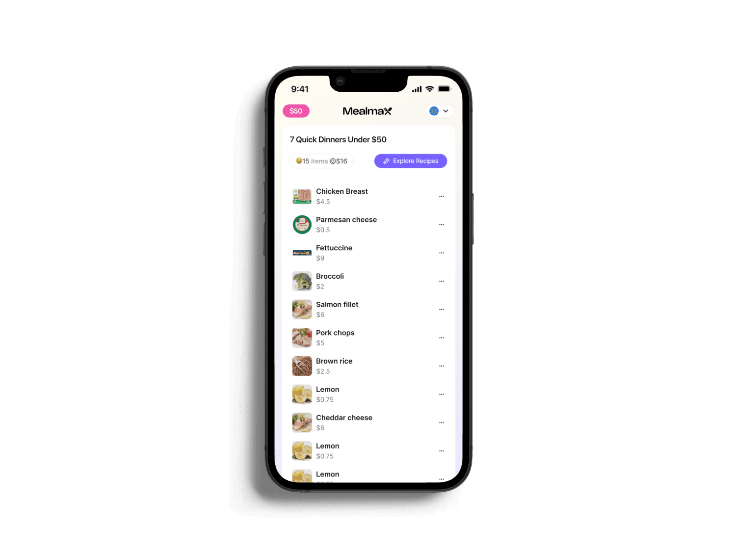 Get a complete shopping list from your local stores that costs exactly that amount.